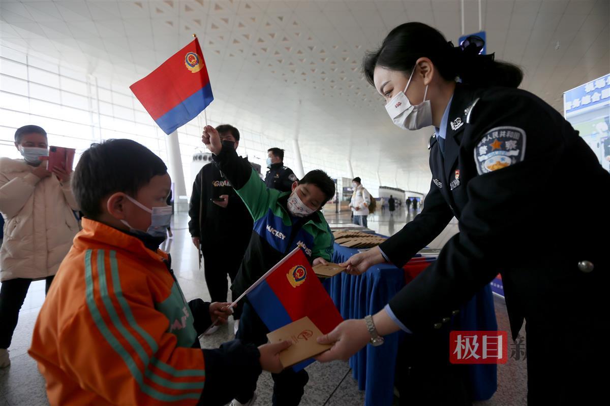 当日,在活动现场,机场公安局“空港警花”团队通过发放“110”普法知识手册和反诈宣传册,向旅客详细讲解防范电信诈骗知识、机场出行注意事项等安全知识。民警提醒,如遇突发状况或者物品遗失,可向机场民警求助。