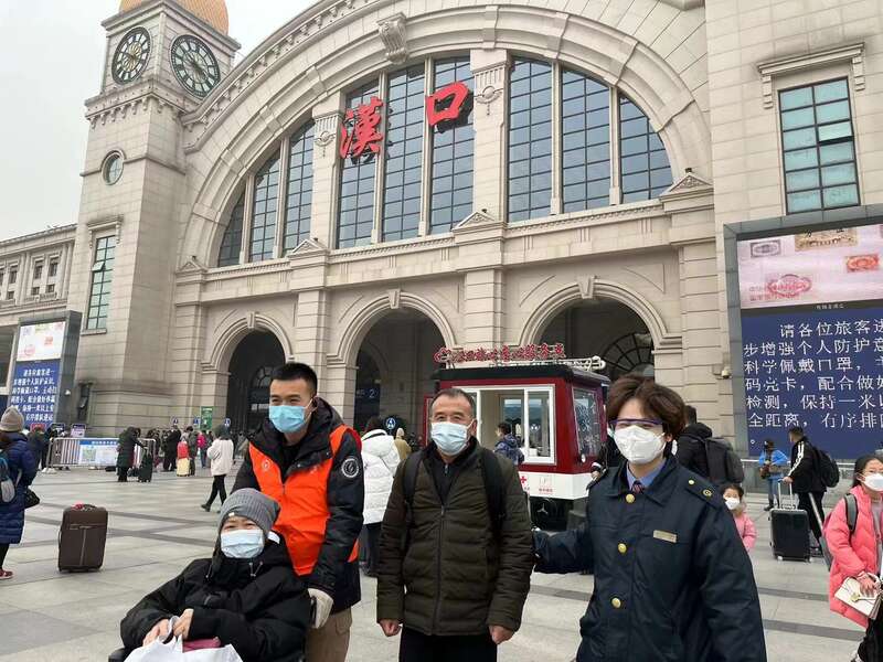 汉口站熊文劳模工作室与武汉地铁姚婕劳模工作室也积极互动,打通“地铁-国铁”通道,开启“免检模式”,乘客平均换乘过程不超过2分钟。