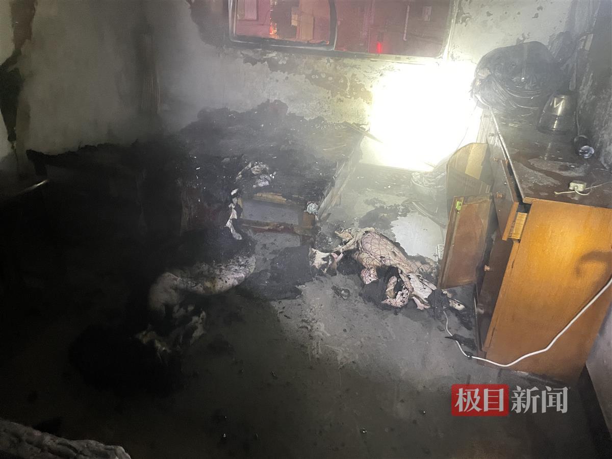 消防救援人员到达现场后经侦查得知,自建民房一共三层,着火点在二层,火灾现场为一间十几平方的卧室,卧室里有两张床,现场浓烟滚滚,靠里面的一张床及被褥正在猛烈燃烧,木板床柱也被烧断,墙面被熏黑,无人员被困。随后,消防救援人员出单干线一支水枪对火势进行扑救,十分钟后火被扑灭。