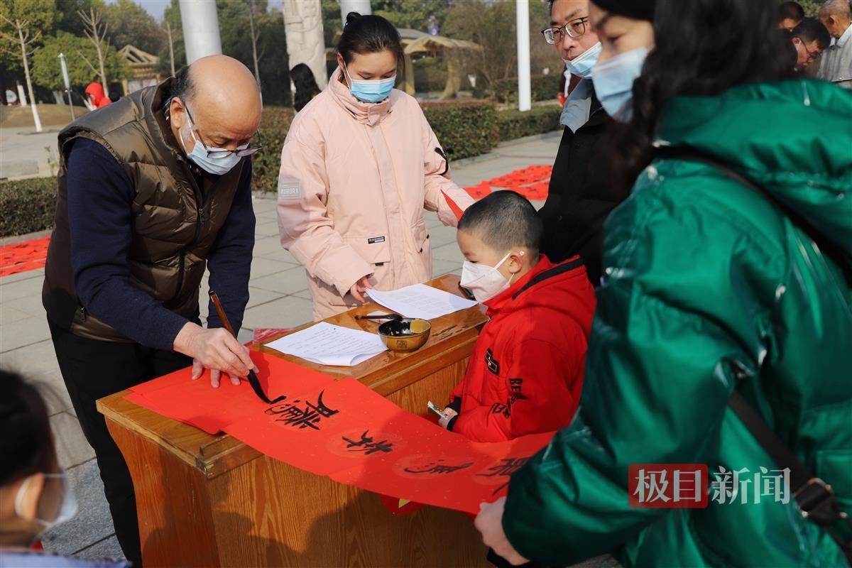二十多位老中青书法家现场泼墨挥毫,书写春联的字体有草、隶、行、楷等,“对联内容有选好的、也有现场制作的,都是吉祥如意、祝福新春之类的联语。”通山县书法家协会副主席陈华山介绍,观众现场观摩书法和对联,叫好后就纷纷拿走。