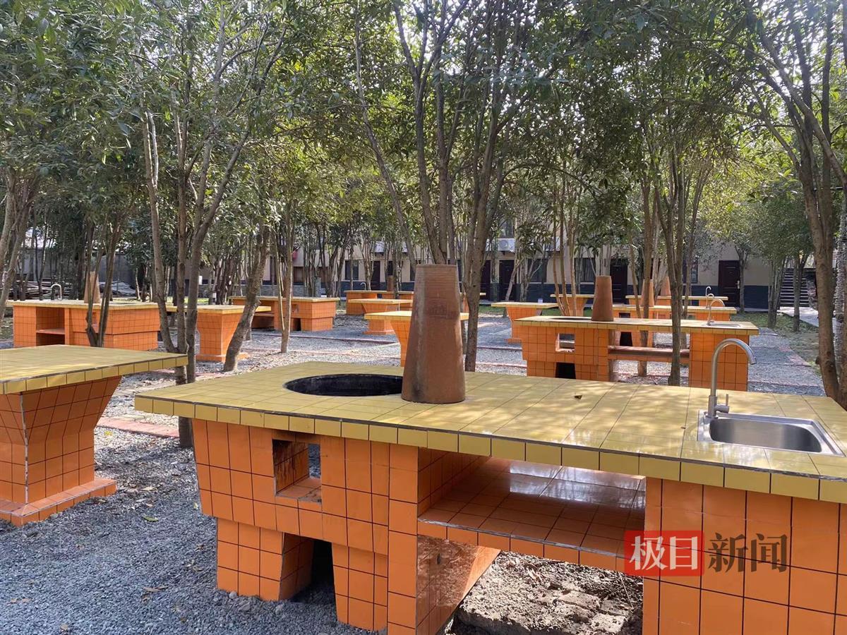 一大片丛林间,一排排柴火灶台引人注目。据介绍,市民可以亲自到菜地现摘蔬菜自己炒菜,园区提供灶具、调料等。此外,因为春节,该庄园还设置了年货展,黄酒、香菇、腊肉等基地自产的农产品集体亮相,市民吃饱喝足还能买些天然食材回家。