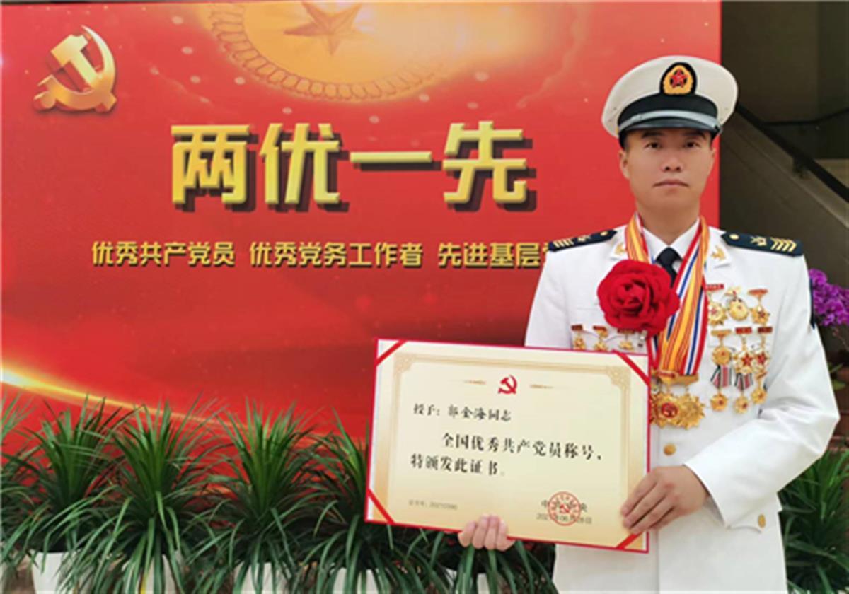 从军以来,郭金海先后50次参加战备远航、实兵实弹重大演习等战训任务,累计出海2000余天,被中国人民解放军海军特聘为“海军安全专家”,曾获“战区海军专业比武第一名”,荣立二等功两次、三等功两次。他还先后荣获“全军精武标兵”“海军十大杰出青年”“海军技术能手”等多项荣誉称号。2021年6月28日,郭金海被中共中央援予“全国优秀共产党员”。