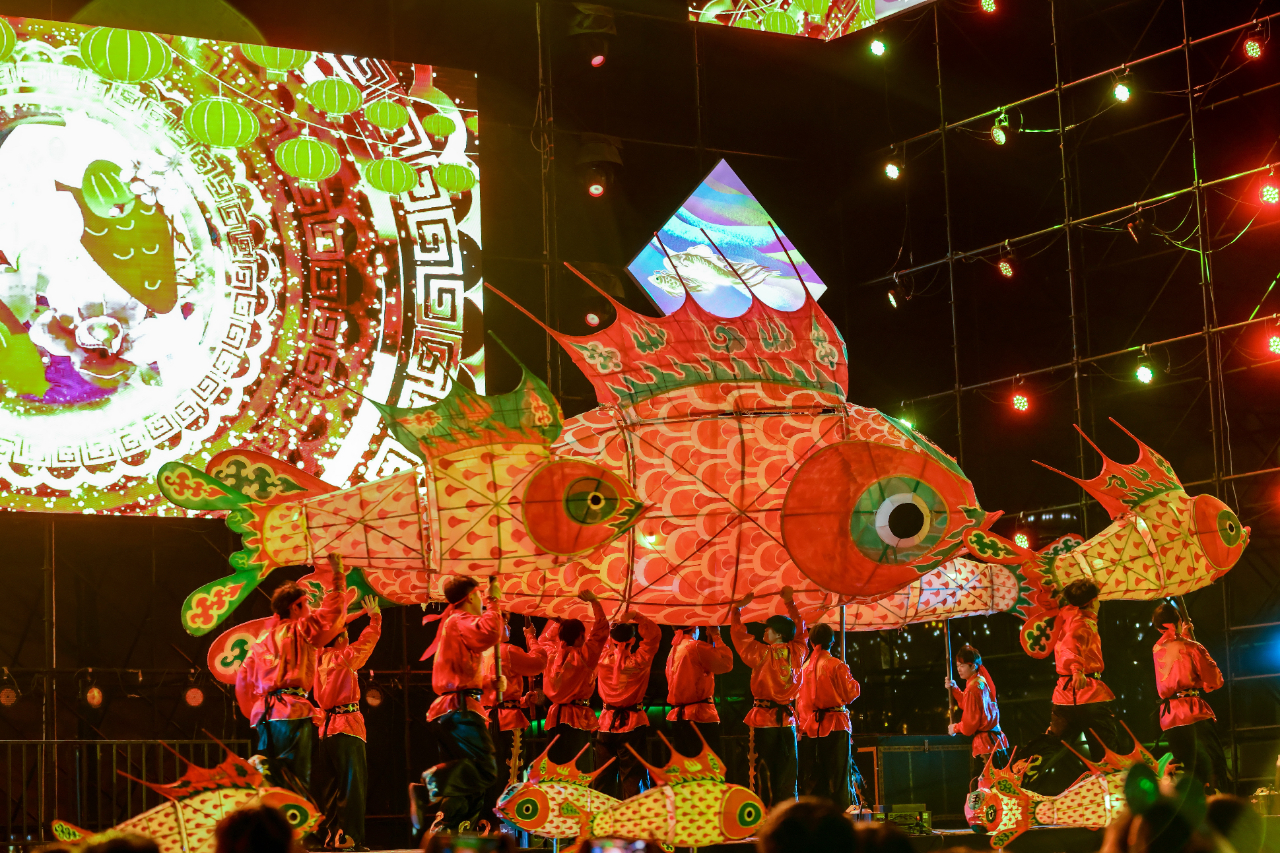 原标题:“汪满田鱼灯”点亮武汉欢乐谷