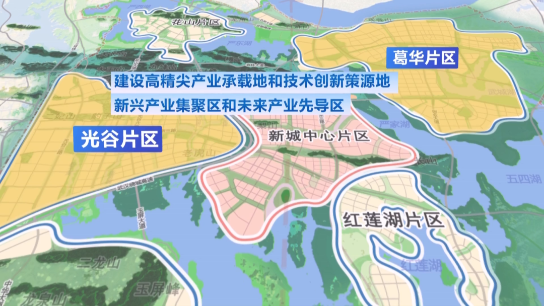 光谷片区和葛华片区,打造高端制造业及科技创新的综合性片区,相当于新城的“智造中心”;
