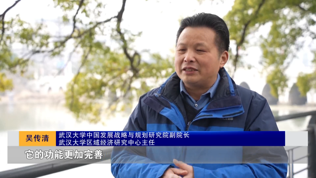 武汉大学中国发展战略与规划研究院副院长、区域经济研究中心主任、教授吴传清:也有生产的空间,也有服务的空间,它的功能更加完善,让人才和产业更好地进行匹配,打造成为一个体现人与自然和谐共生、产城融合发展的城市的样板。