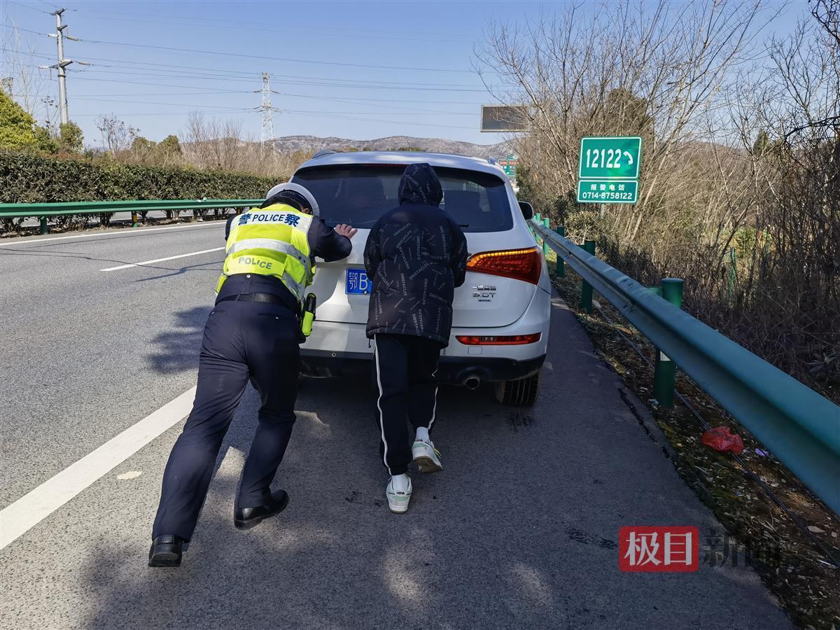 春运期间,交警帮助抛锚车辆推下高速(高警总队二支队供图)