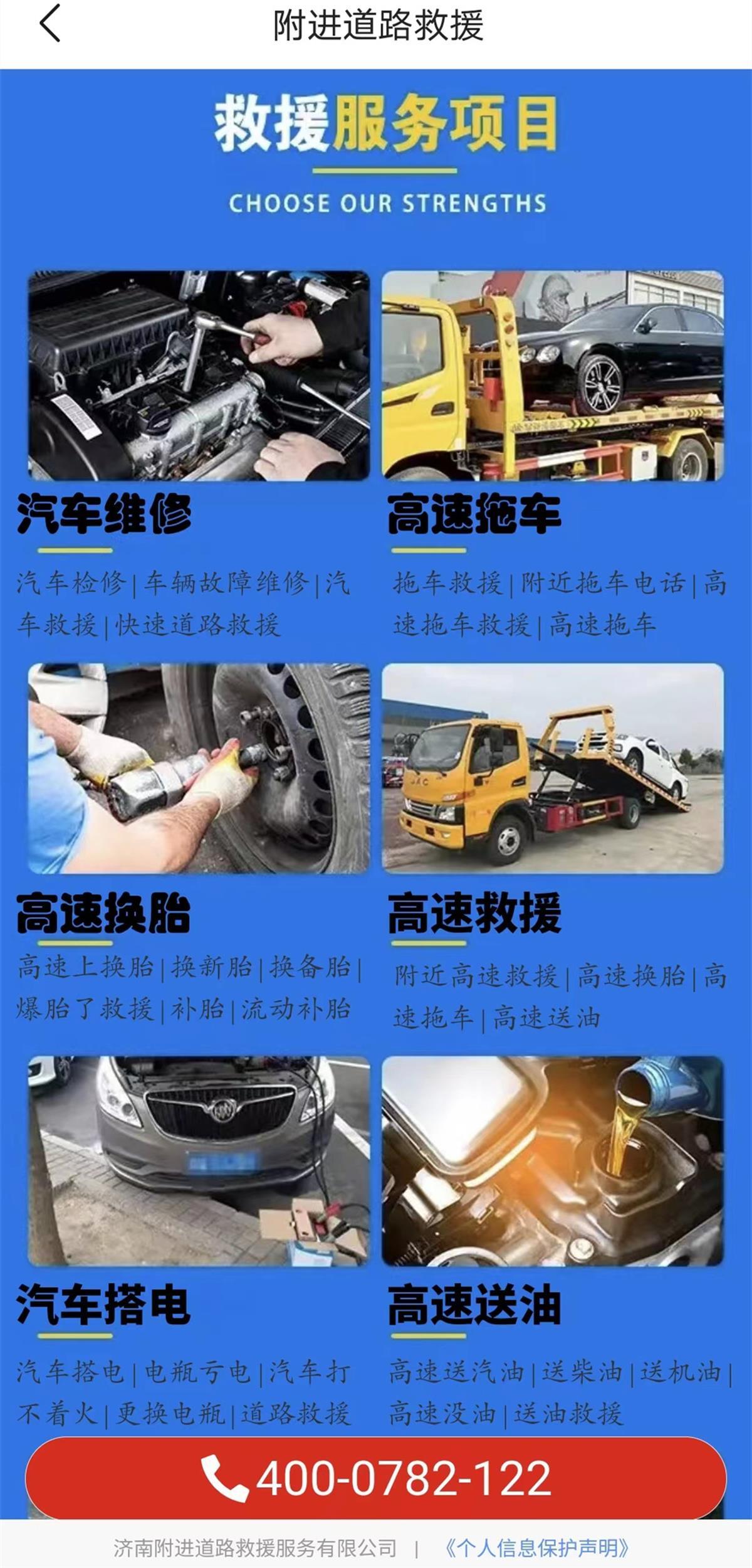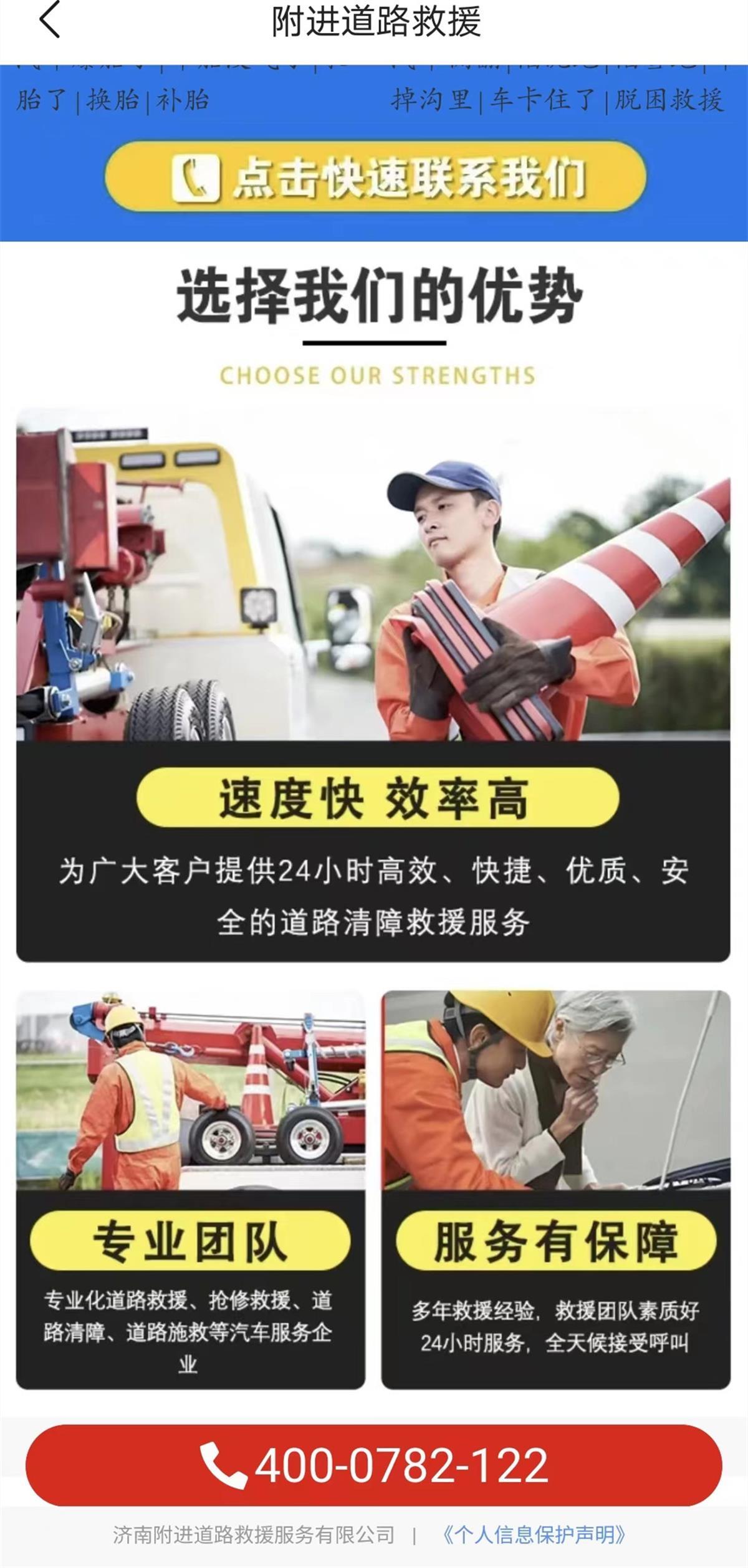 极目新闻记者随机在网上输入“高速救援”关键词进行搜索,结果出现多条“道路救援”的广告,网址内容显示可提供的服务包括:拖车、送油、搭电、补胎、换胎、脱困等。如李先生所讲的一样,记者随机拨打一个“400”开头的救援电话。点击该电话拨打出去后,手机上却出现了一个显示“184”开头的济南号码。对方得知记者在高速上爆胎后,很专业提醒开启双闪灯后,放置后迅速撤离至安全地带。