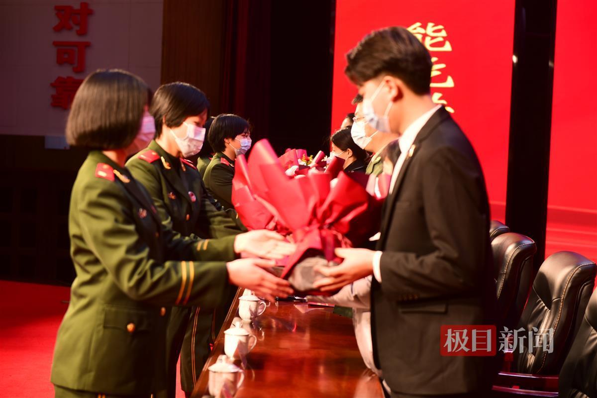 官兵代表向报告团成员敬献鲜花,现场播放李林雨先进事迹简介片,而后报告团成员从不同角度、不同侧面,饱含深情地为官兵做了一场感人至深、令人深思、催人奋进的报告,全方位展示了一个可信、可亲、可敬、可学的新时代好青年形象。