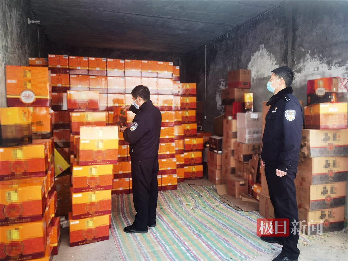 2022年12月底,襄阳市公安局治安内保支队民警在侦查工作中发现,一名有制售假酒前科人员地车下库停放一辆用布遮挡车玻璃的面包车,通过缝隙发现车内装满白酒箱。凭着高度的职业敏感性,民警推测该酒有问题,遂拍照将酒箱外标识发给酒厂专业打假人员,通过甄别系假酒。