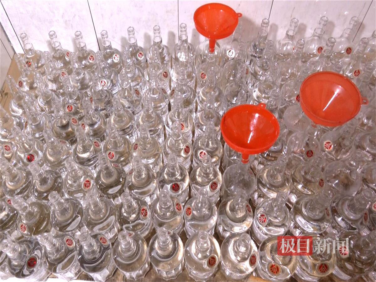 据保康办案民警介绍,该制售假酒团伙成员之间是亲友,组织内部分工明确,有专人负责清洗酒瓶、勾兑、打码、贴标签、打包装和销售运输等。为了使假酒更逼真,他们不仅在包装上下足功夫,就连合格证、验酒器、包装袋、酒杯也都一应俱全,一般消费者仅凭肉眼很难识别。