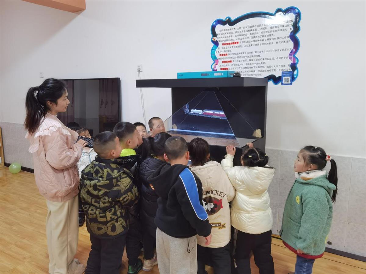 2月23日,湖北宜城市机关幼儿园开展新设备应用体验课活动,尚梦瑶老师在体验课中运用了全息投影技术,在课堂上小朋友们无需佩戴3D眼镜即可从360°的任何角度观看到真实的3D影像。