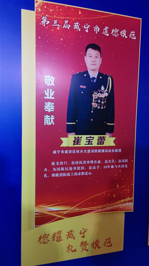 2月上旬,在第三届咸宁市道德模范颁奖表彰活动中,咸宁市消防救援支队咸安大队桂乡大道消防救援站站长助理崔宝蕾荣获“敬业奉献”奖。
