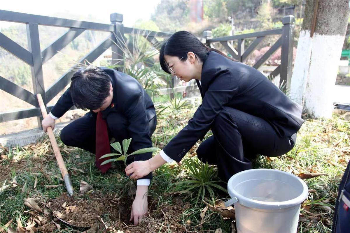 研讨结束后,干警们前往生态环境修复现场,参与企业补植复绿行动,铲土、埋苗,大家忙活得热火朝天:“希望这些树苗同我们一起,共同守护这一方水土一方人。”