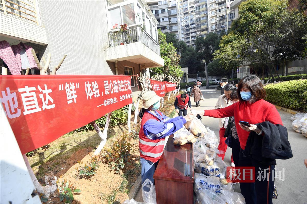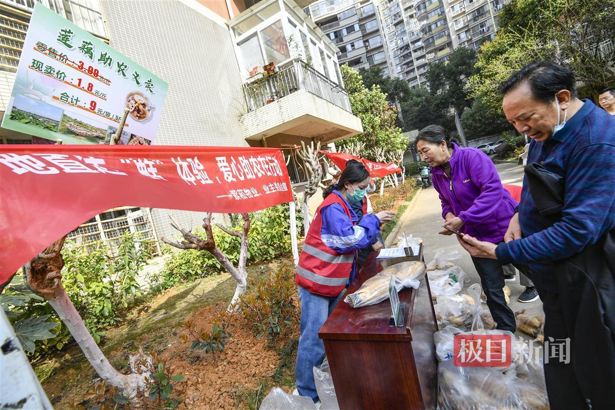“产地直达‘鲜’体验,爱心助农在行动”、“欢迎广大业主到小区中央广场参加爱心助农义卖活动”……上午7时许,记者刚刚进入此次助农现场义卖的洪山区紫崧枫林上城小区里,就看到多条横幅,号召市民以购买莲藕的方式支持湖北特色农产品。