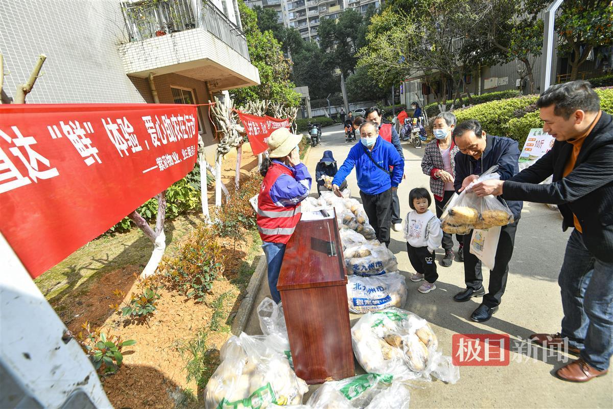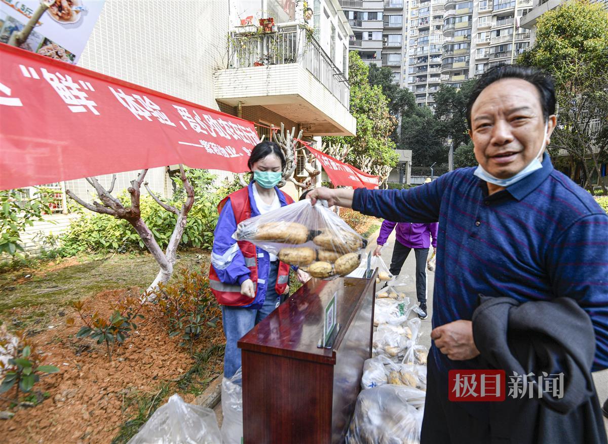 于是,通过各方努力,当天的莲藕助农义卖行动分别在武汉市洪山区的紫崧枫林上城小区、紫崧逸景华庭小区、紫崧花园小区等三座大型居民小区进行。在枫林上城小区,购买了“9元莲藕包”和“14元莲藕包”的居民付阿姨笑着说:“家里本来就爱煨藕汤、吃莲藕,这个价钱又便宜,莲藕又新鲜,还能帮助农户,一举三得,肯定要多买一点。”