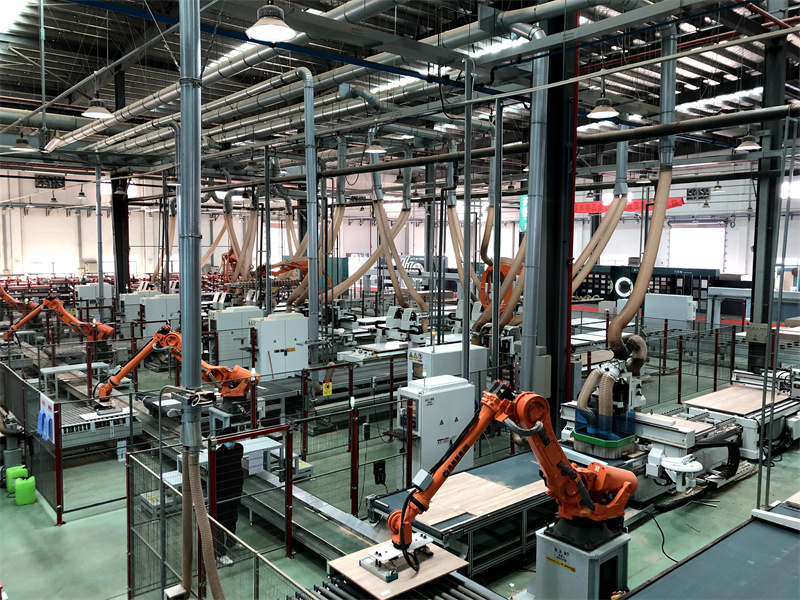 “这是国内少有的智能无人开料工作站。”顺着湖北好莱客创意家具有限公司执行总经理刘金泉手指的方向,海绵吸盘将一块标准板件送上生产线,机器手臂根据优化的锯切图,精准切割,形成不同规格、大小不一的板件。随后,各种规格的板材通过不同的传送带进入封边、转孔等工段。“通过精准的数据运算,板材的利用率可达92%,大大节约了板材。”