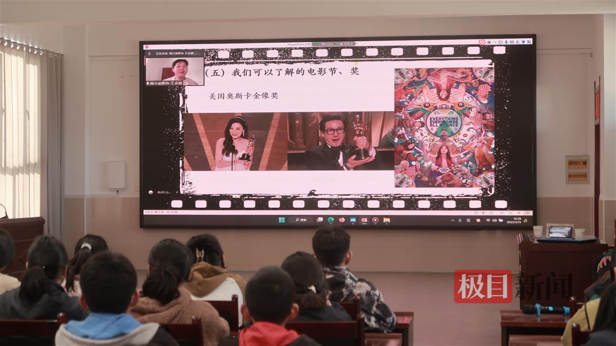 王金展课后接受极目新闻记者采访时表示,很荣幸为大家授课,“我们相隔数百里,用知识跨越大山,用电影绘出中学美育教育的一笔。”在他看来,在电影的世界里,大家看到了人生的种种可能性,经历着世间的悲欢离合。“电影拓宽了生命的长度和广度,我们让孩子们鉴之于光影,更多的不是为了精通电影,而是为了体悟人生。”