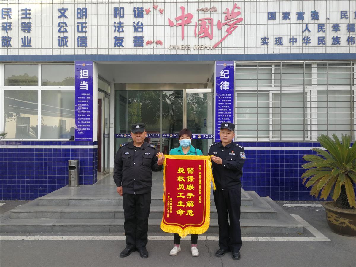 听闻消息,在外地打工的老赵的儿子和妻子先后赶回襄阳。3月12日,老赵妻子将一面“警保联手解危,挽救员工生命”的锦旗送到保安队。
