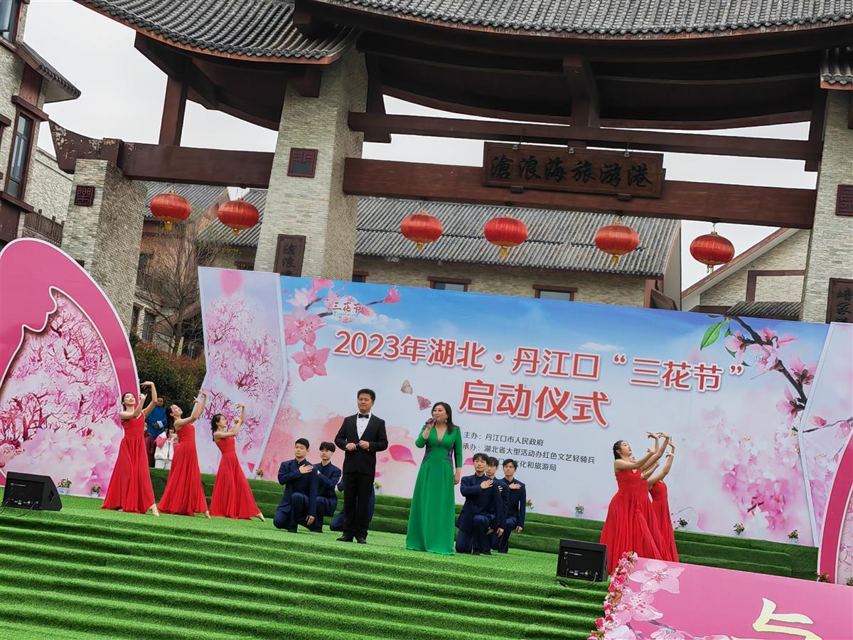 3月18日,“春满水都·与花共舞”丹江口市2023年“三花节”旅游季启动仪式在丹江口市沧浪海旅游港广场举行,拉开丹江口春季游序幕。花车巡游、千人太极拳表演、汉服秀、管弦乐演奏、《太极图》演艺、花船文艺演出、音乐烧烤等众多活动引爆现场,吸引了来自湖北省、陕西省、河南省等10余省市的万余名游客慕名而来,游唯美花海,赏环库美景,品民俗风情,与春天约会。