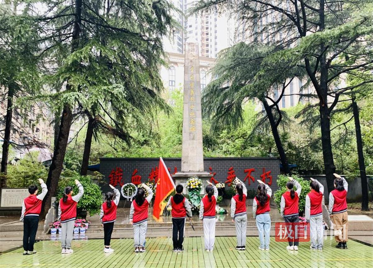 辛亥烈士陵园坐落于武汉市江岸区球场路2号,为纪念在阳夏战争汉口保卫战中牺牲的无名烈士修建的,是武汉地区现存辛亥首义烈士公墓最大的一处。队员们心怀坚定,冒着大雨来到陵园,在辅导员老师华雨辰的讲解下,重温辛亥革命及武汉保卫战的悲壮历史。先烈的铁血精神深深震撼着少年的心,站在庄严肃穆的纪念碑前,队员们自发默哀,沉浸在对烈士的追思之中。