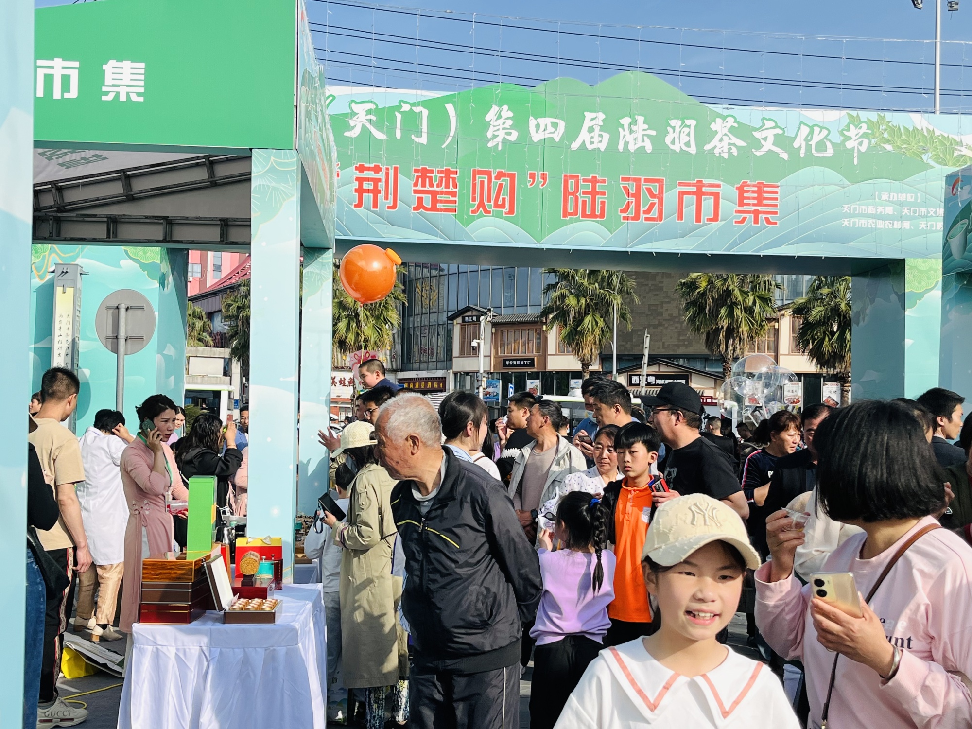 陆羽茶文化节“荆楚购”陆羽市集人流如织(央广网发天门市融媒体中心供图)