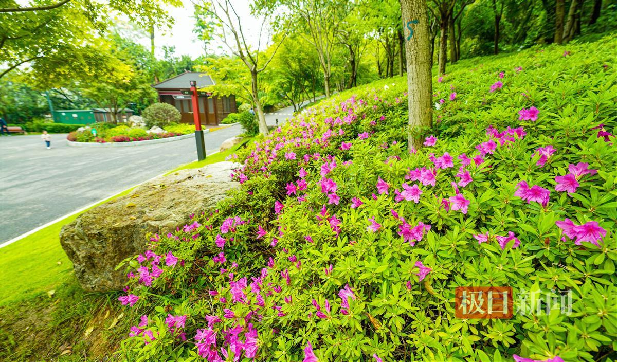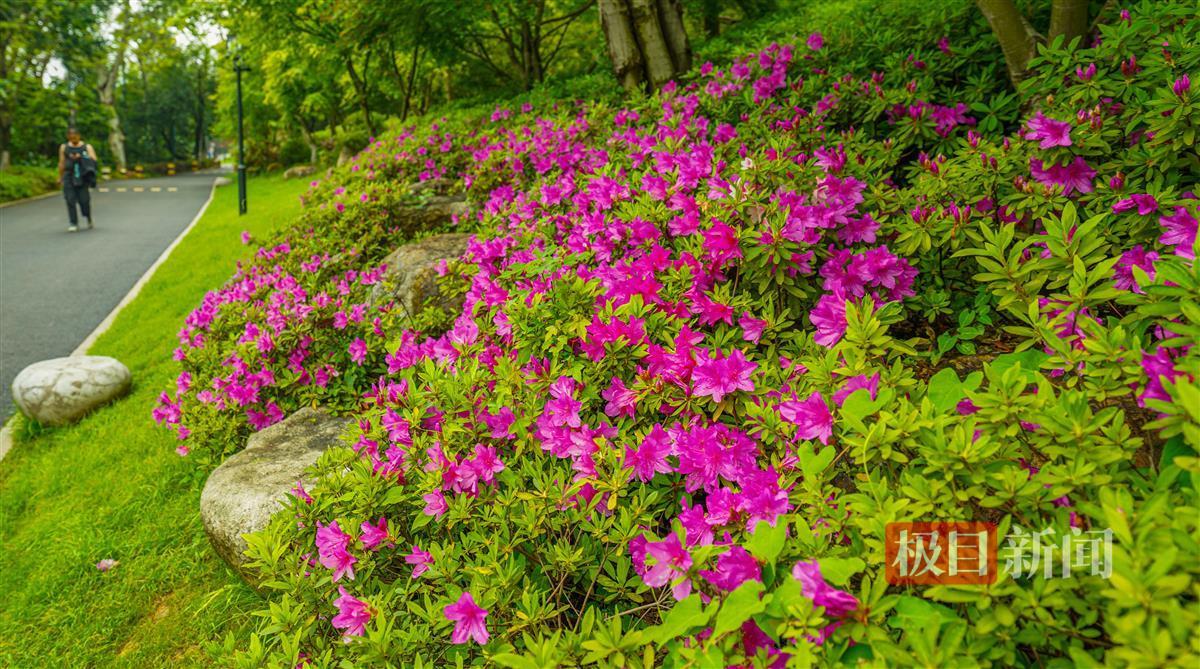 在武汉龟山景区,有46万余株杜鹃给山体“绣”上或红或粉或紫或白的花衣,有春鹃、夏鹃和映山红等品种,就绽放在景区山路两旁,陪伴你赏大武汉两江四岸的景致。