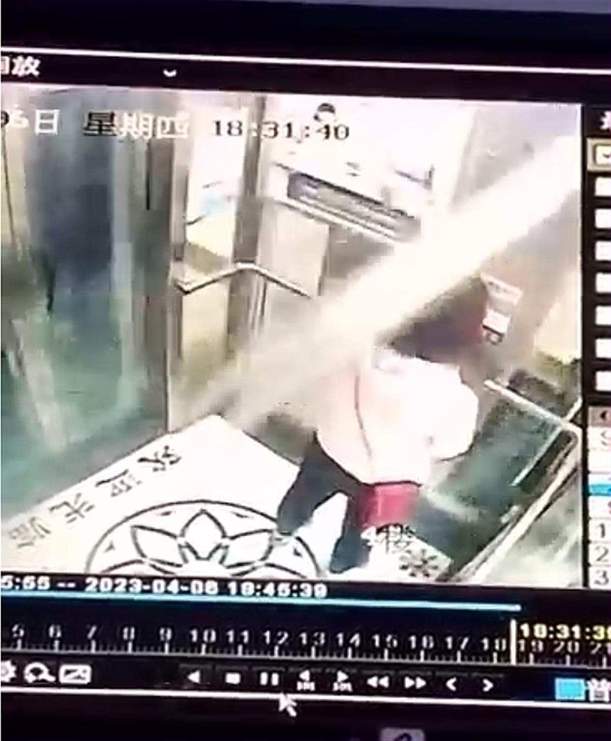 孙女士提供的电梯监控截图,显示有东西掉下来的瞬间 (孙女士供图)