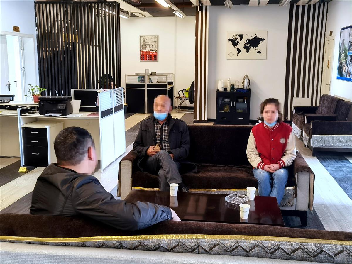 孙女士和家人跟商场物业经理协商 (极目新闻记者摄)