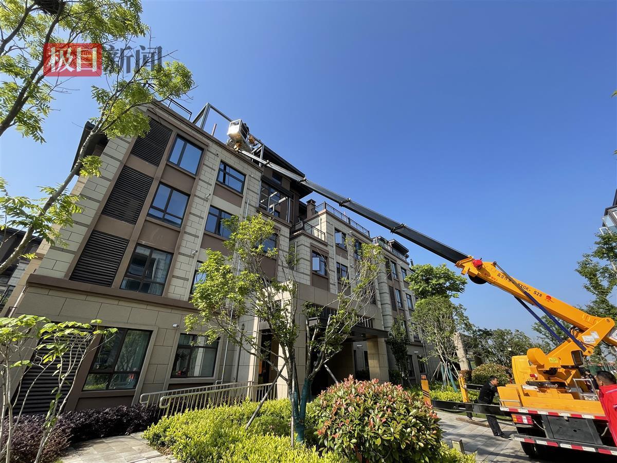4月26日,为了维护公共安全和城市管理的正常秩序,执法队员决定拆除该违建阳光房。执法中心城管路长李黎介绍,该阳光房拆除过程并不顺利,业主不愿开门,执法人员利用云梯到达楼顶,对阳光房依法拆除。
