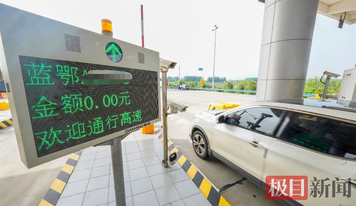 上午8时35分,极目新闻记者驱车行至武汉市东西湖区张柏路,向径河收费站前行,此时恰逢早高峰时间,从海口立交上金山大道车流明显增多,记者上高速路段以后,行车畅通,约5分钟就到径河收费站。记者车辆经ETC专用通道,无需排队快速通行,向前西湖首发站一路畅通。从径河收费站入口到西湖收费站出口,全程12公里,耗时8分钟,ETC显示屏显示收费0元。