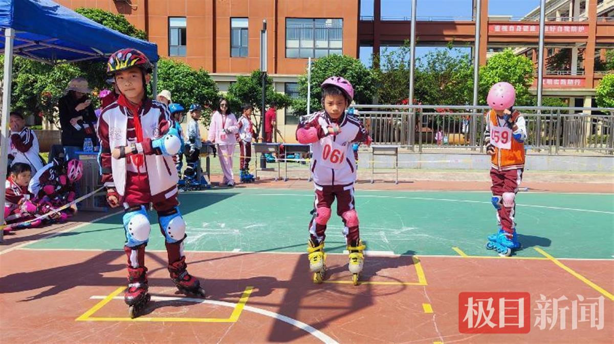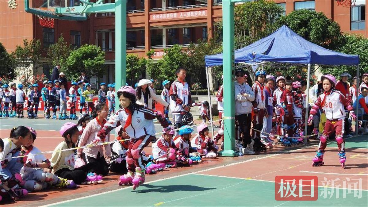 “我们小学部轮滑社团开设两年多了,目前共有170多个孩子,分为初级班和高级班,针对高级班的孩子,我们还开设有平花班、速滑班两个细分班。”该校轮滑社团指导老师李卫军告诉极目新闻记者,学校会在每个礼拜一、礼拜二下午的社团课时,对孩子来进行系统性的训练和指导。