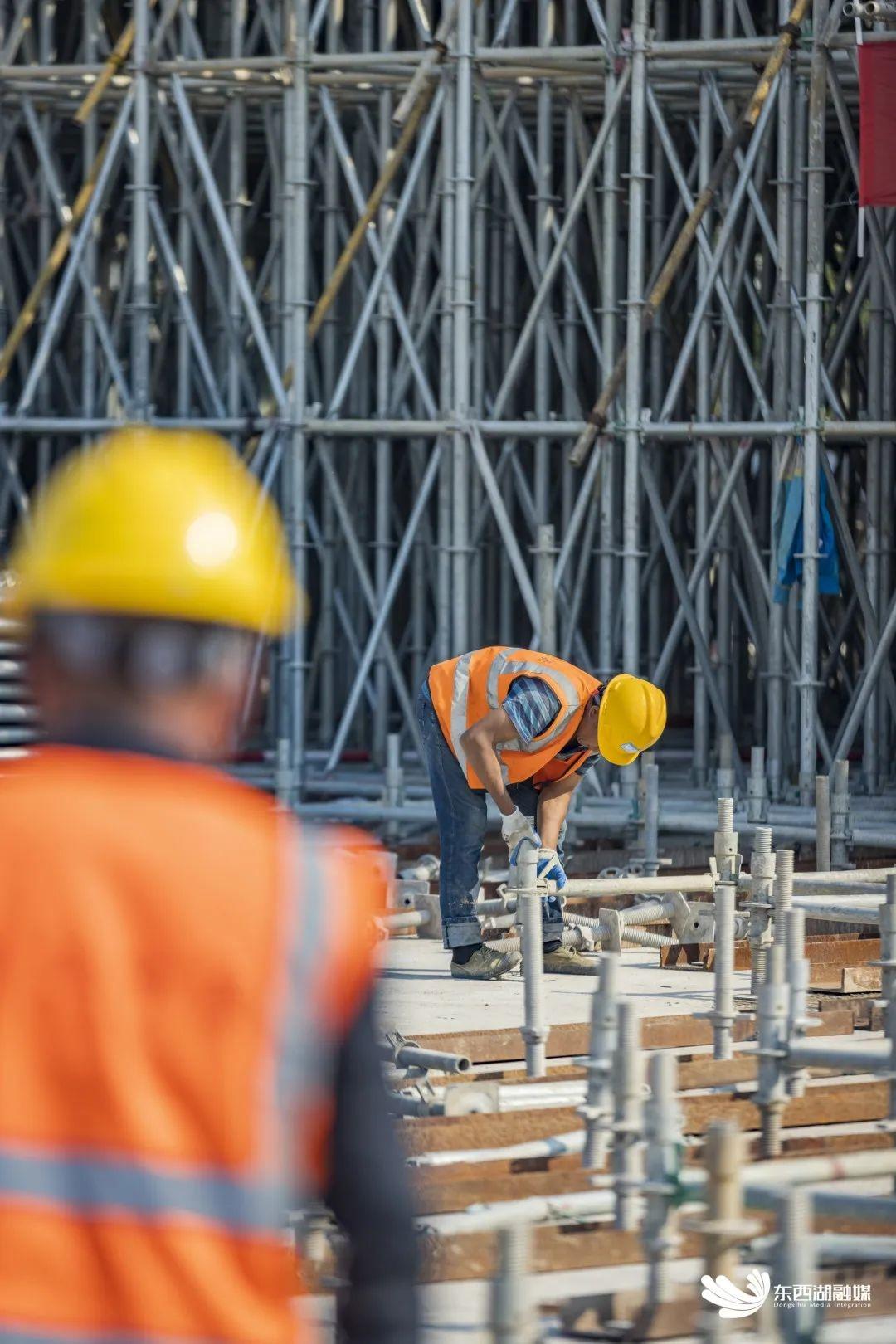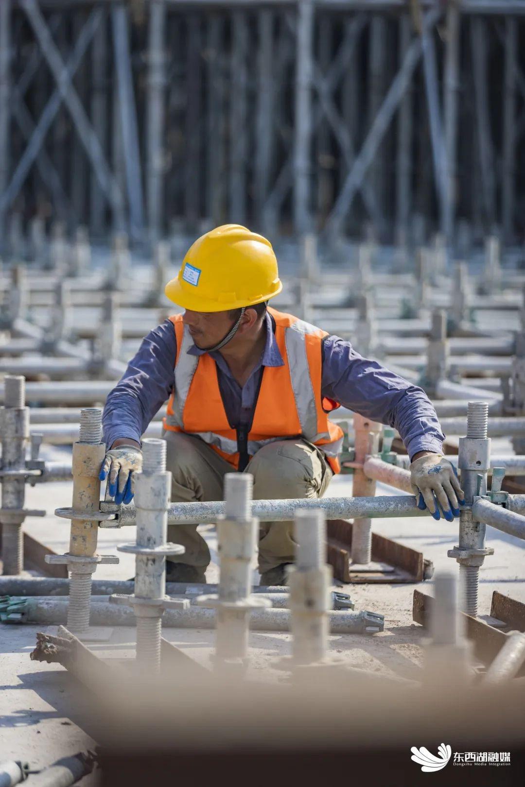 在京港澳高速跨线桥钢筋加工厂里,电焊声、工人们的吆喝声不绝于耳,数百名建设者忙着制作桥梁桩基、门式墩柱钢筋笼,跨线桥正在进行门式墩柱模吊装,部分路段路基土石方开挖,各分项工程有序推进。