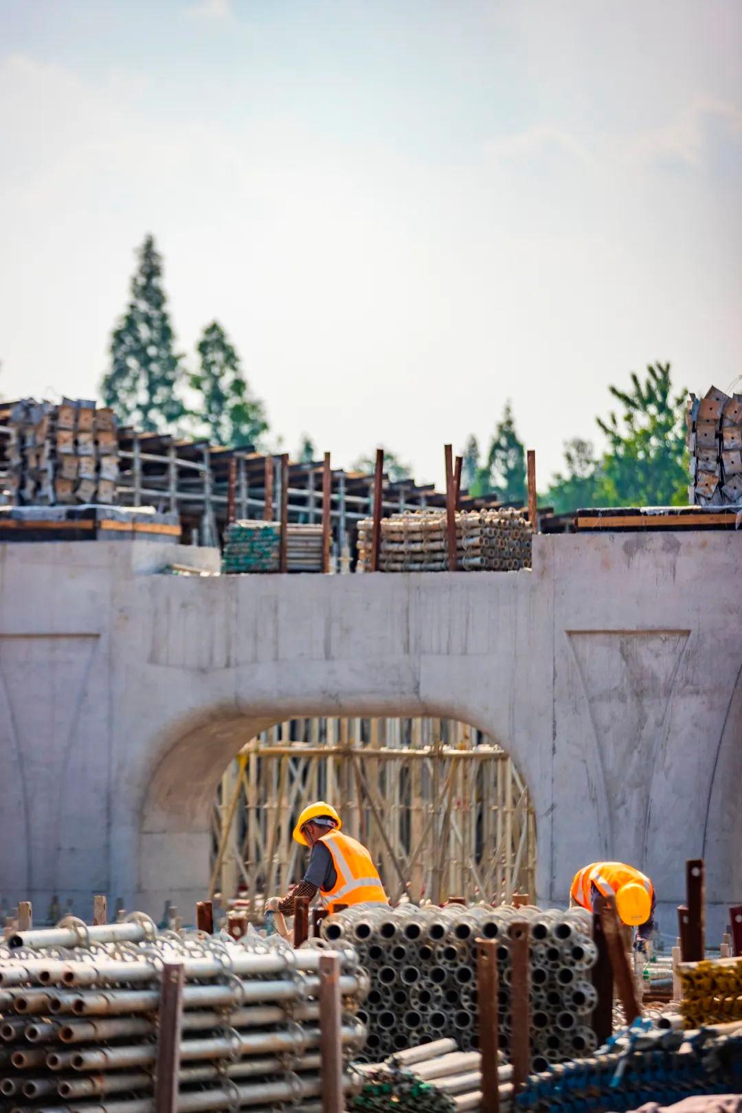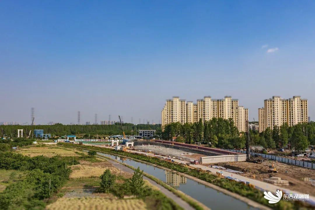 据了解,该工程自去年年底正式启动施工作业,到目前,垸湖路已基本完工,金山大道主线道路土石方工程完成52%,全线正加足马力进行京港澳高速跨线桥承台及门式墩柱施工,该项目道路工程力争年内完工。