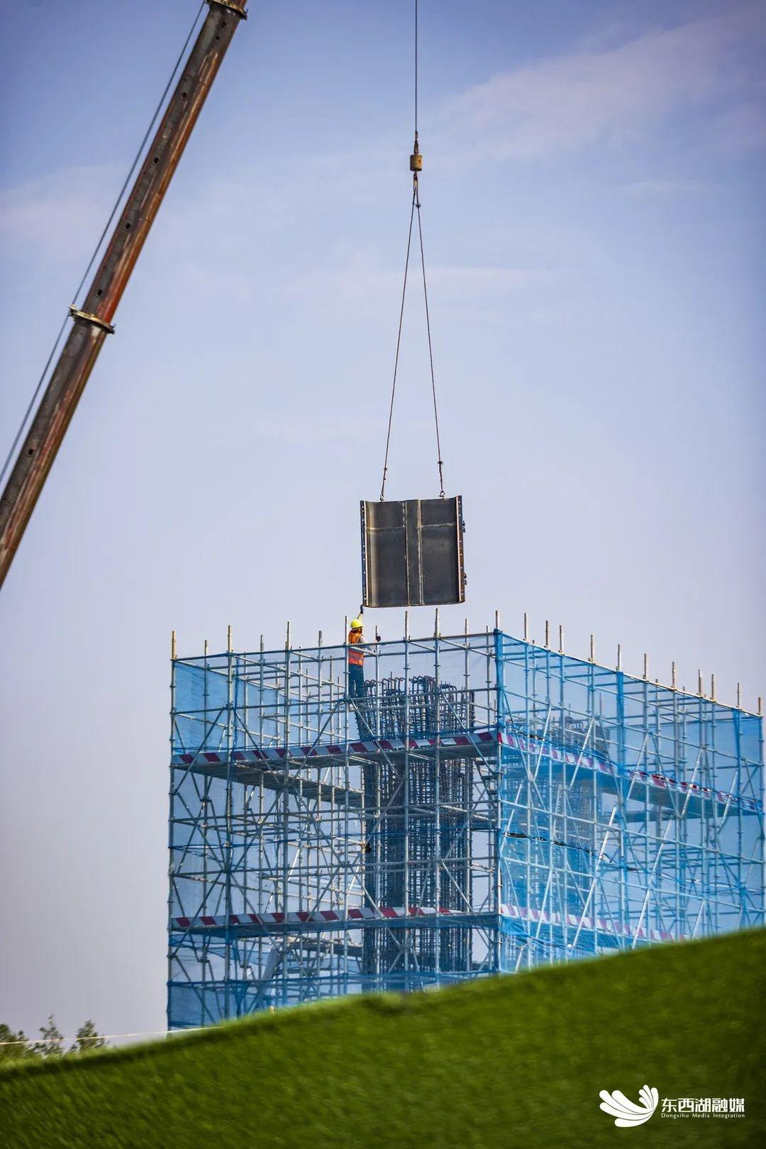 “项目京港澳高速跨线桥第一、二、四、六联为混凝土现浇箱梁,第三、五联为钢箱梁,其中第三联钢箱梁跨京港澳高速,第五联钢箱梁跨兴工十路。钢箱梁吊装及焊接拼装跨越现有通行道路,安全风险大,同时钢箱梁与现浇箱梁工序交叉,为本项目施工重难点。”项目实施单位区城投公司项目现场责任介绍,为攻克此施工难点,项目在施工组织上合理划分施工阶段,做好平面布置,充分利用各工序流水的空隙时间做好交叉施工。同时项目双管齐下,跨线桥钢筋采取集中加工,订单式配送,实行流水化、工厂化,实现了项目精细化施工、标准化管理,为金山大道西延线建设“加力助跑”。