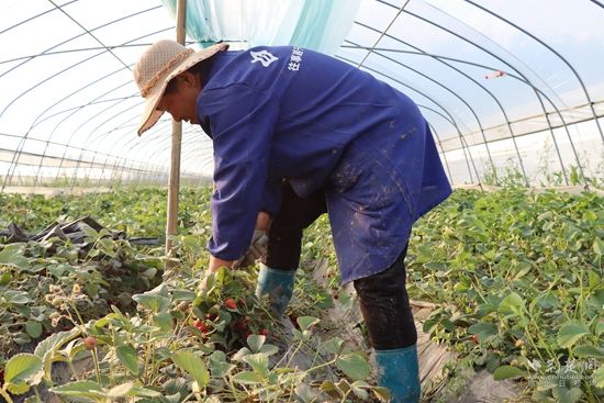 荆楚网(湖北日报网)讯(记者 阮琼 曾达飞 通讯员 熊无双 黄胜)4月25日,走进鄂州华容包王村汉鑫家庭农场,一排排大棚在阳光的反射下,闪耀着银光。大棚内,三五个村民正挥舞着锄头,将挂着零星草莓的秧苗连根拔起。