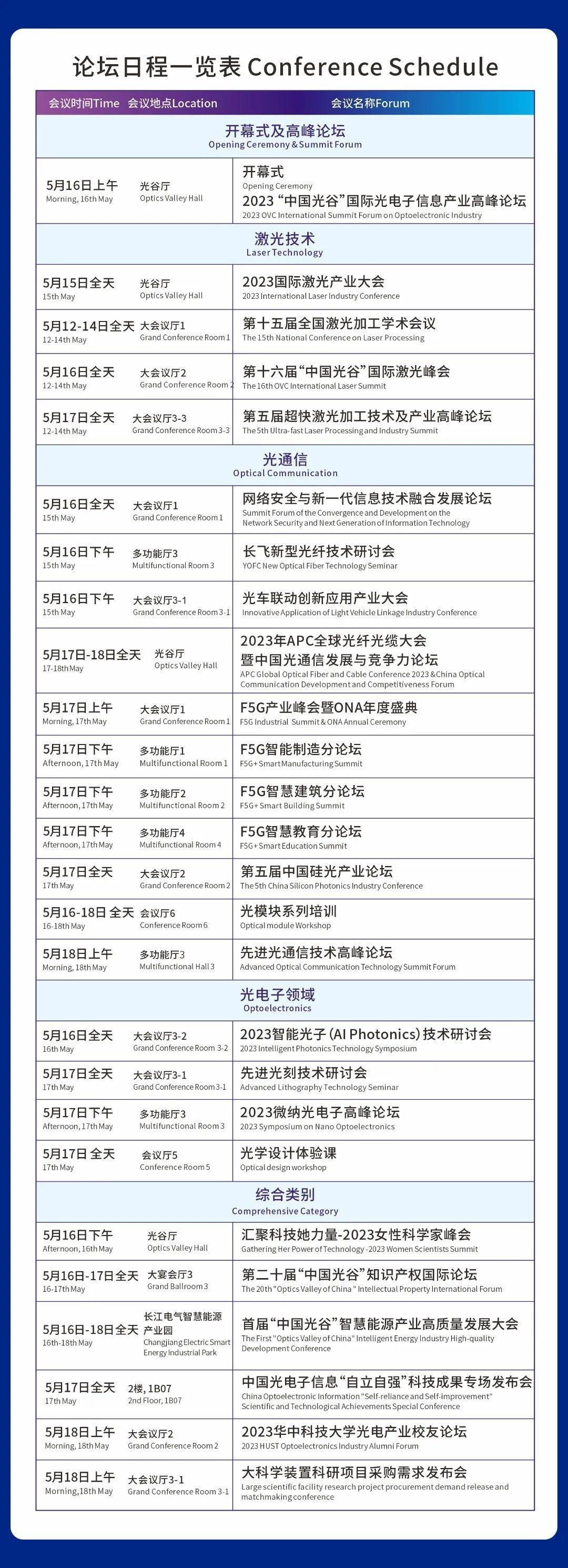 第十九届“中国光谷”国际光电子博览会暨论坛即将于5月16~18日在中国光谷科技会展中心开展。1场国际高峰论坛、3场产业交流会、15场专题论坛、7场同期活动、硬核“尖板眼”展品,与专精特新、上市企业面对面对接交流,一手行业权威数据、前沿资讯,直击行业热点技术。