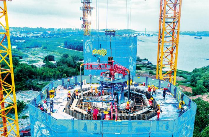 5月7日傍晚,燕矶长江大桥建设现场如火如荼,建设者们正在进行主塔施工。截至目前,主塔累计完成塔柱施工20节,双层引桥累计完成540根桩基混凝土灌注、119个承台浇筑。燕矶长江大桥是连接鄂州与黄冈的第二条过江通道,上层为高速公路,下层为城市快速路,对推动武鄂黄黄一体化高质量发展具有重要意义。