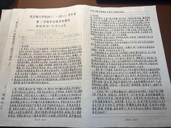 杜泽介绍,形势与政策课采取考察方式,学生可以开卷作答。收齐试卷后,这份“印刷体”答题纸引起了办公室老师的围观,他也激动地拍照发朋友圈分享,“对其他同学也是一种对标、学习的榜样”。