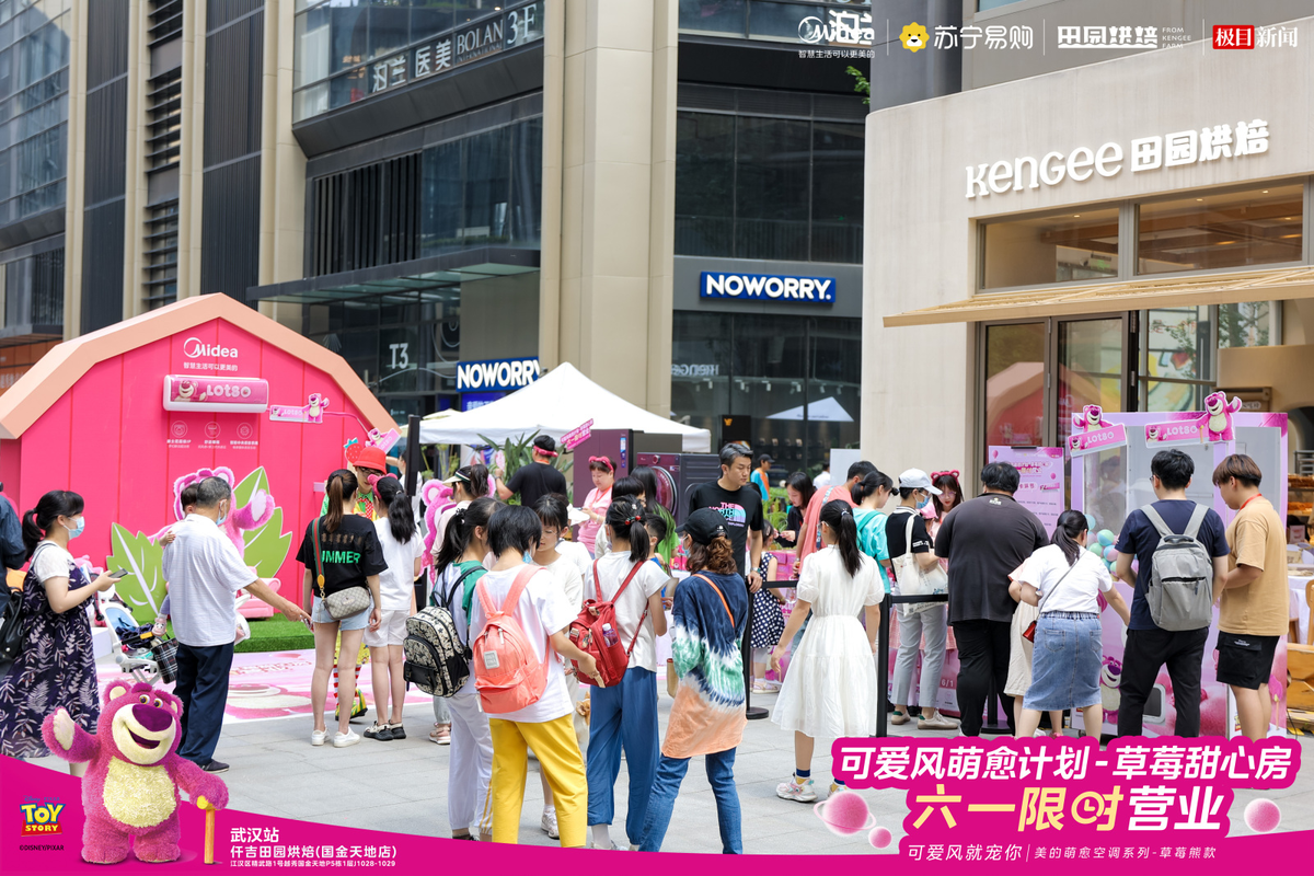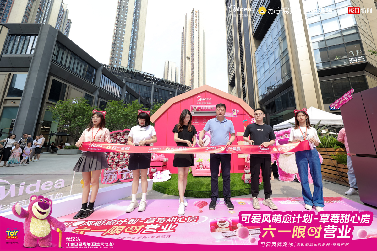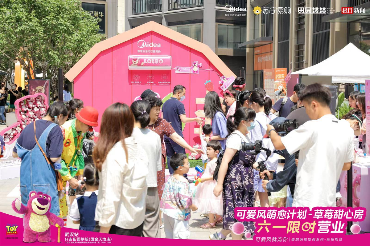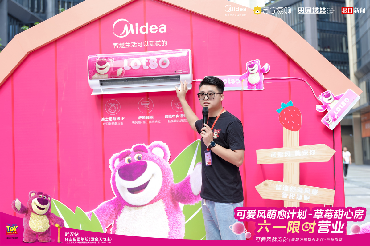 “妈妈,这是《玩具总动员》里的草莓熊!”“妈妈快扫码!可以参加打卡赢奖品的活动哦!”“我要抱着草莓熊再拍一张!”……原来,这个新晋的六一打卡胜地,是由美的电器特别为小朋友们准备的。当天下午三点整,美的草莓熊儿童空调新品发布会在这里萌动开场。