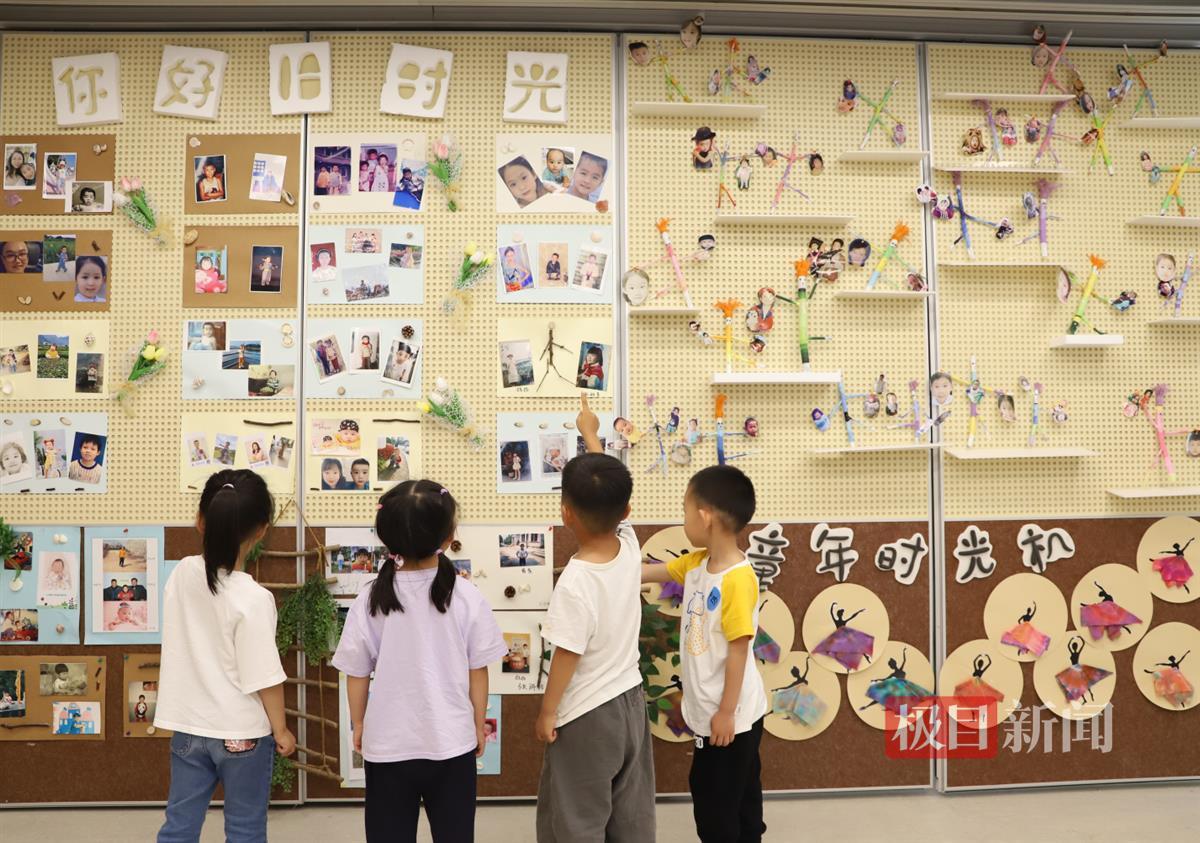 园内布置有“回忆童年”博物馆,里面展示的全是孩子们的父母小时候时所流行的玩具,这些孩子们以前没怎么见过,他们好奇地玩了起来,还互相交流“通关”秘笈;在“时光照相馆”主题照片展,孩子们则看到了自己父母小时候的照片,他们兴奋地上前比较自己是跟爸爸还是妈妈最像,看当时孩子生活的环境和现在有什么不同,还对老照片进行艺术装饰与创作;在全园自主游戏游园活动时间,孩子们则玩起了爸妈们小时最喜欢玩的游戏,“捉泥鳅”“木片过河”“平衡石塔”“大型挑木棍”“纸飞机大赛”“投壶比赛”“丛林寻宝”“树叶船比赛”“探险乐园”“森林小桥”……园区充满了欢声笑语。
