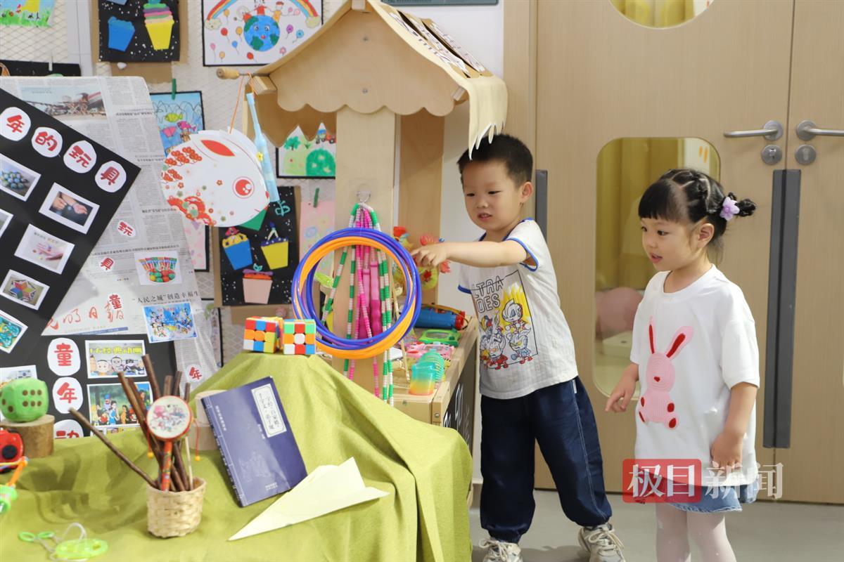 玩爸爸妈妈小时玩过的玩具和游戏,看爸爸妈妈小时候的学习生活图片,体验不一样的年代感……5月31日,湖北省直机关汤逊湖周店幼儿园举办“童年同庆 欢乐嘉年华”六一活动,孩子们仿佛坐上了时空穿梭机,回到了爸爸妈妈的童年和他们一起过节。