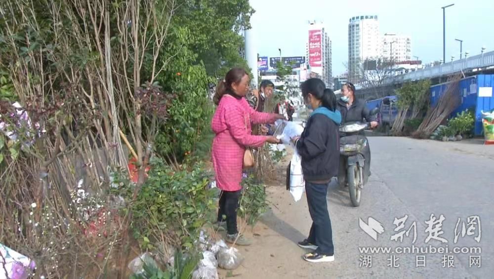 4月14日一早,东新乡白庙村的李江权、帅翠夫妇就来到大悟县一桥头的苗木摊前,各种苗木吸引了不少顾客前来选购。