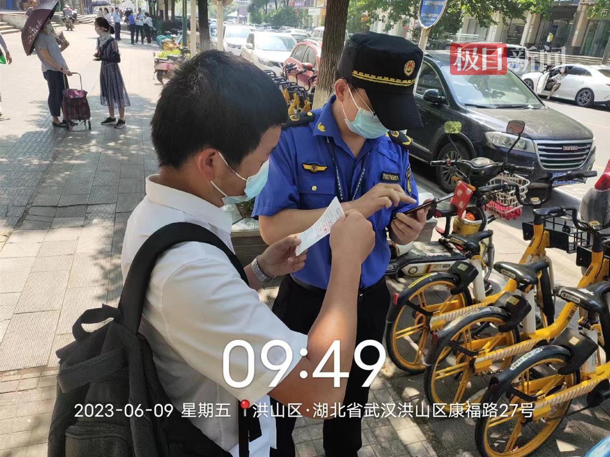共享单车无序停放,违规占道,影响行人出行与市容市貌。6月9日,武汉市洪山区卓刀泉街道综合执法中心对三家共享单车企业共开出1860元罚单,督促单车企业担起主体管理责任。