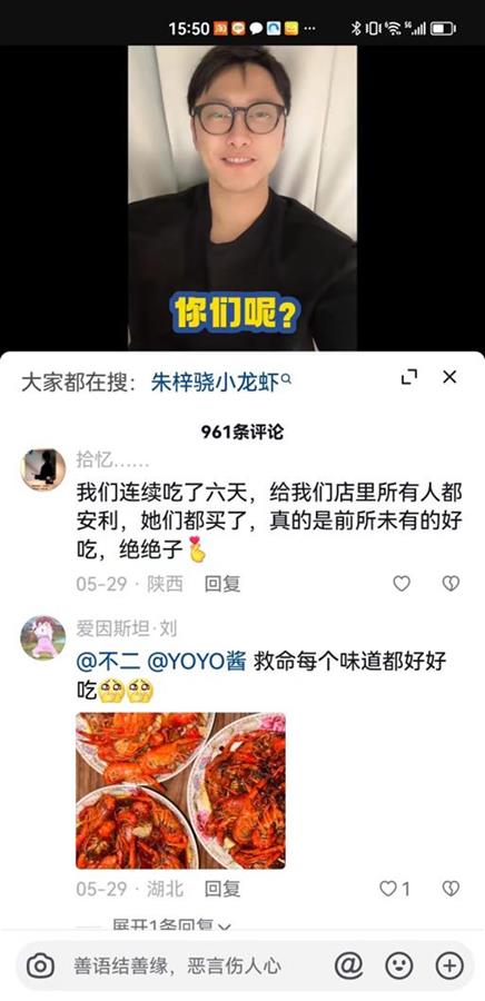 作为此次直播的合作方,朱梓骁表示,无论是美食达人,还是口味刁钻的吃货,都成为白金系列小龙虾的回头客,这说明莱克小龙虾真的是物美价廉,经得起市场考验。