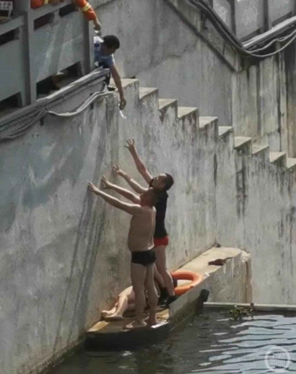 ▲女子跳河,三人先后下水救人。图片来源/受访者供图