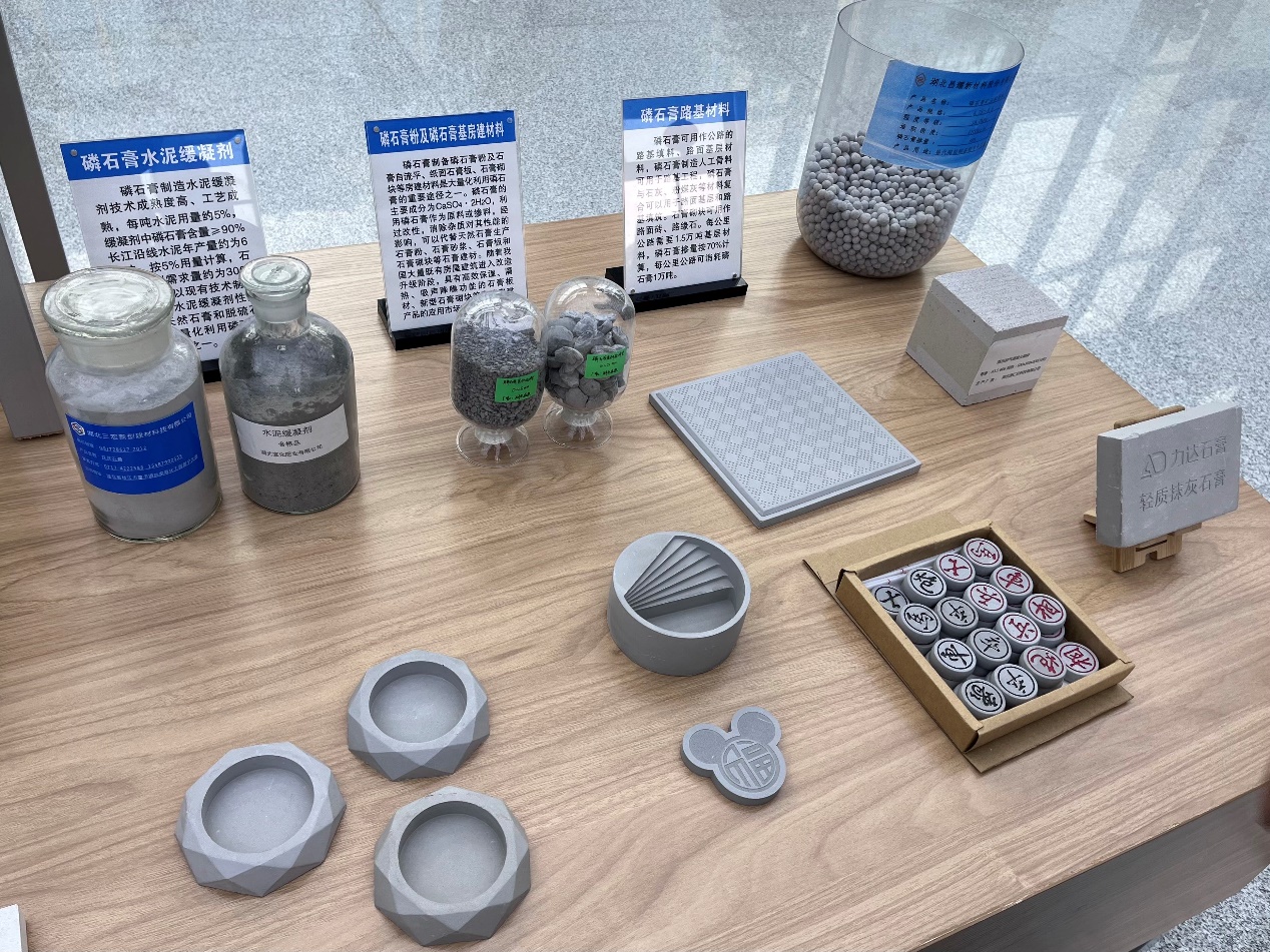 三峡实验室展示的磷石膏综合利用相关产品。澎湃新闻记者谈婧媛摄