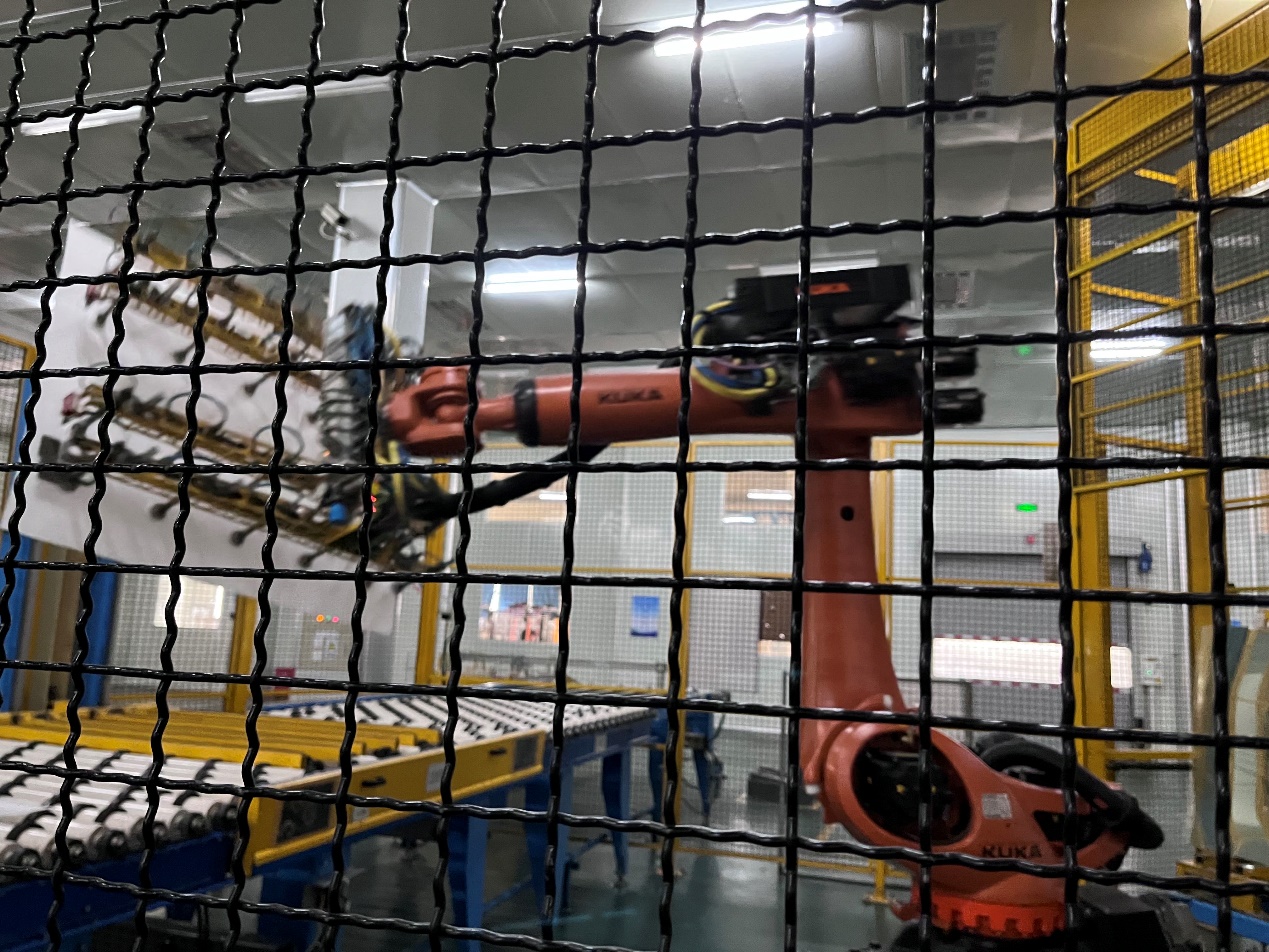 宜昌光电的生产车间内,机械手正在堆垛玻璃。澎湃新闻记者谈婧媛摄