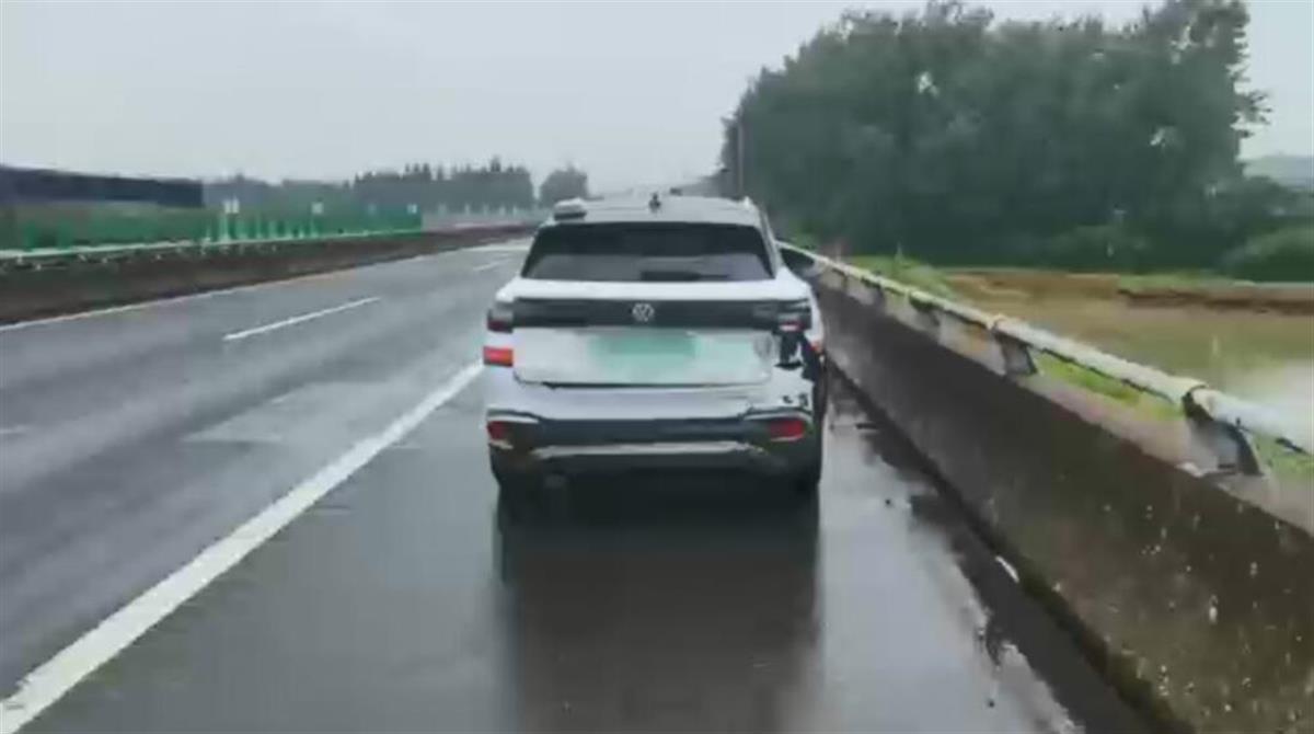 民警询问驾驶员,驾驶员说,当时正在下大雨,自己的车速大概在110公里/小时左右,感觉车有点打滑,想踩刹车降低车速,却发现怎么踩也踩不稳刹车。民警指向驾驶员脚上穿的拖鞋,说:“你穿着一双拖鞋能踩得住吗?”
