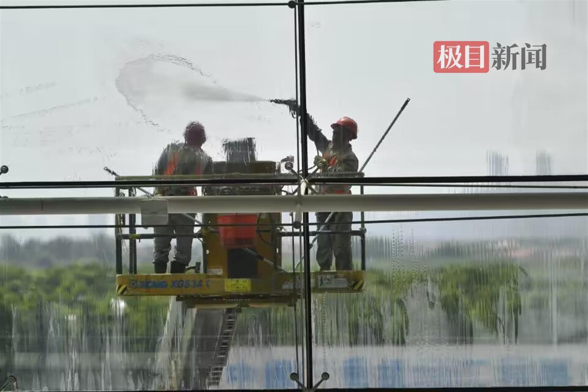中建三局武汉天河机场T2航站楼改造工程项目总工程师雷勇介绍,由于吊顶样板段区域面积最宽的达到4米,所以对材料和工艺的要求很高。原有钢结构桁架高空一次性改造成功,网板龙骨油漆的颜色也作了多轮尝试,最终希望实现旅客无论在哪个角度或是哪个时段,抬头看去都能收获不一样的观感。