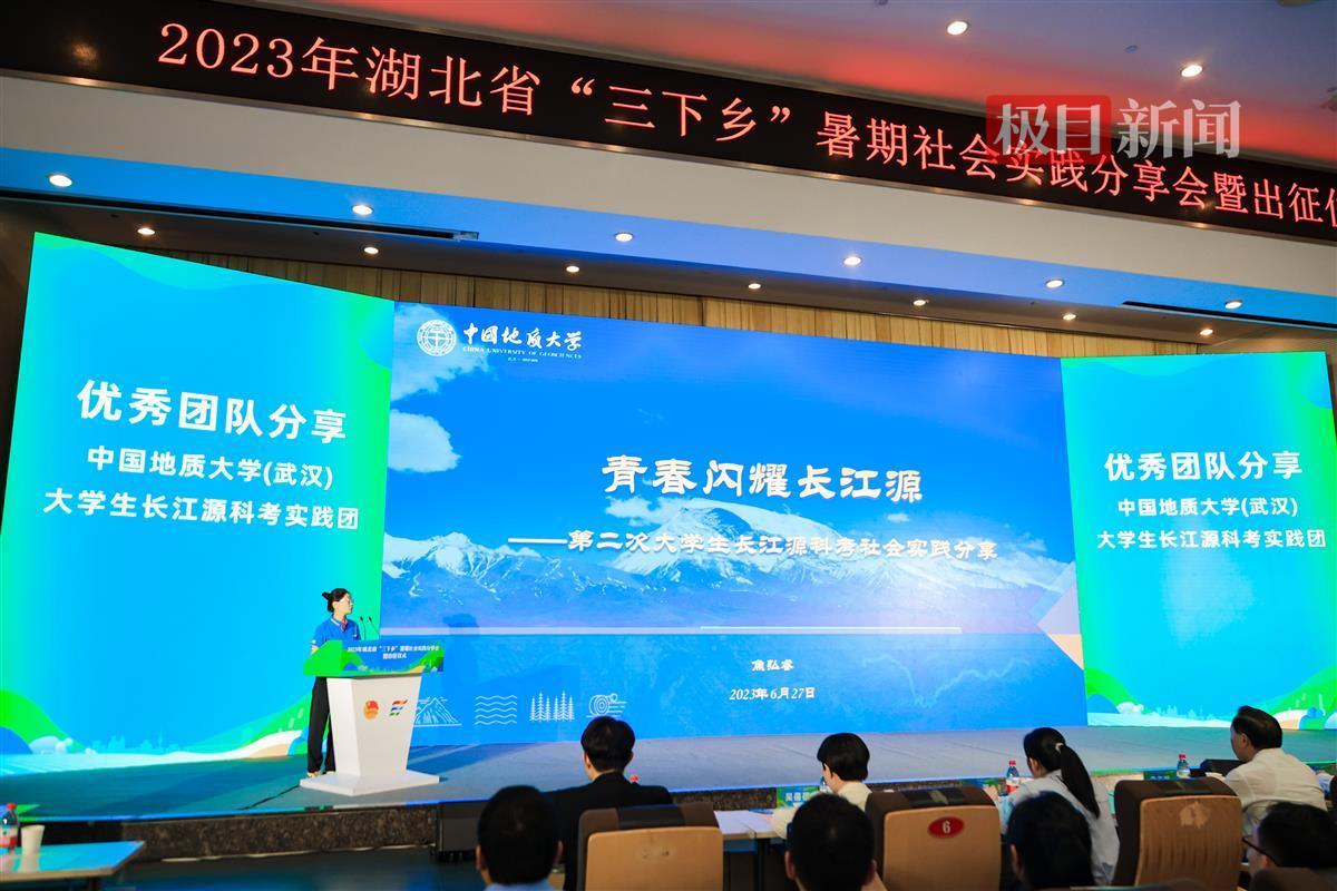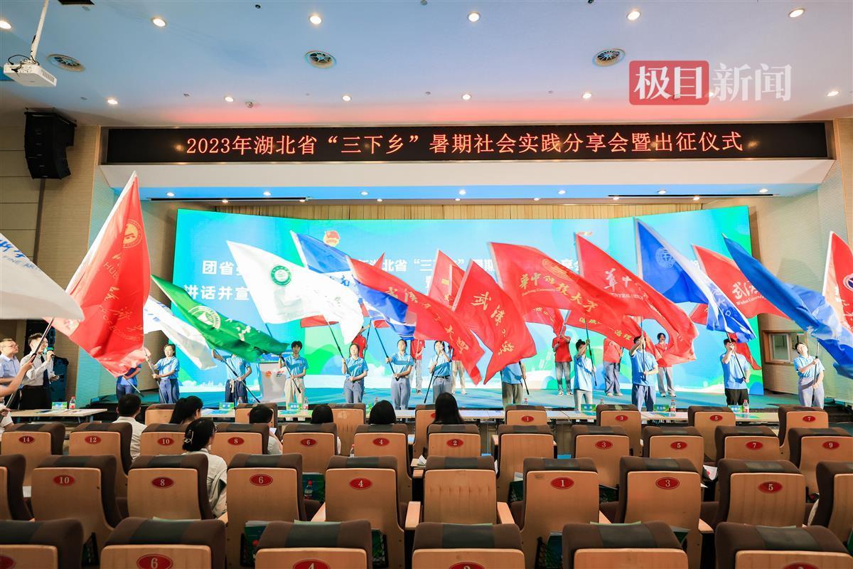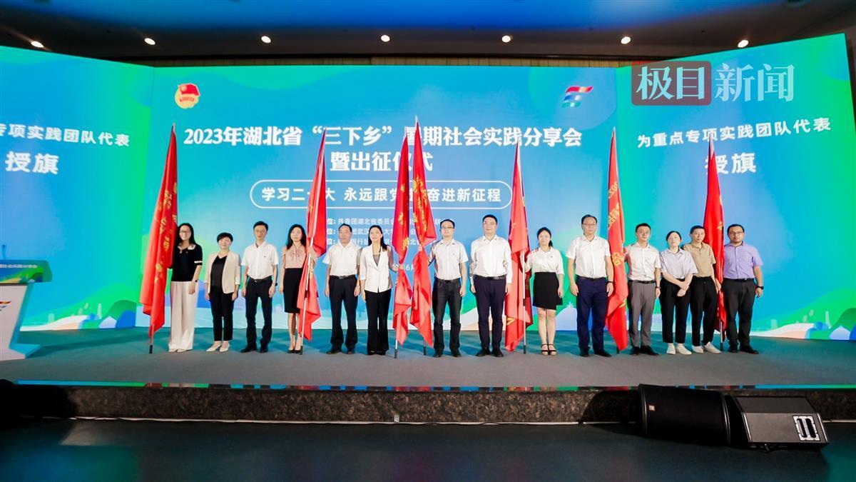 6月27日,2023年湖北省“三下乡”暑期社会实践分享会暨出征仪式在武汉举行,来自全省百余所高校的师生实践队将奔赴全国各地开展暑期实践,活动现场为重点专项团队代表授旗。